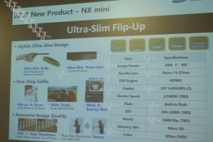 Im „Easy & Stylish“ Bereich ist dort eine Kamera mit der Bezeichnung F1 zu sehen, die auffallend dünn und kompakt ist. Und diese Kamera scheint jetzt erneut aufgetaucht zu sein – und zwar als Samsung NX Mini!