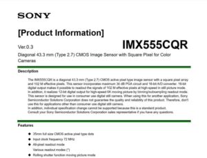 Nun sind Daten zu einem neuen Sony Sensor durchgesickert, der noch nicht auf dem Markt ist, aber vermutlich irgendwann in den nächsten Wochen oder Monaten vorgestellt werden soll. Wichtig ist zunächst einmal, dass es sich um einen Vollformatsensor für ganz normale Fotokameras handeln soll, es ist also kein Sensor, der ausschließlich im Industrie- oder Medizinbereich zum Einsatz kommen soll.